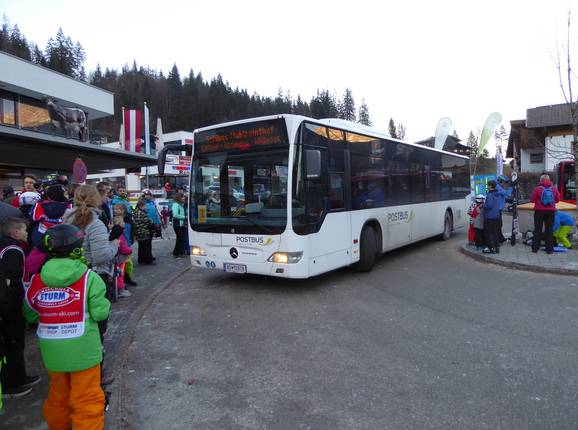 - Lo skibus, che circola ogni mezz'ora, porta dalla maggior parte delle strutture ricettive nelle località di Lofer, St. Martin e Unken alla stazione a valle della Loferer Almbahn I. Con uno skipass valido è possibile utilizzare gratuitamente anche l’autobus di linea da Weißbach a Lofer e da Lofer a Waidring (Steinplatte). Skibus gratuiti collegano inoltre le frazioni di Au, Scheffsnoth e Bachwinkl con la stazione a valle della Loferer Almbahn I.