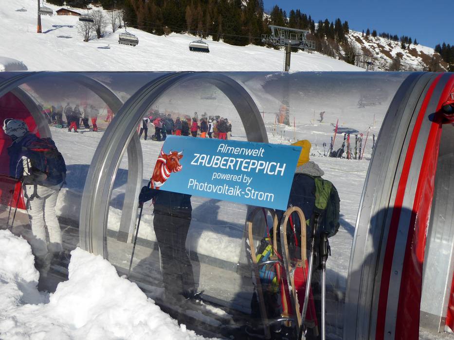 La mobilità locale senza auto è fortemente incentivata. Alla stazione a valle della seggiovia a 8 posti Schwarzeck, un impianto solare di 240 m2 produce elettricità per diversi skilift dell’Almenwelt. Un impianto fotovoltaico al Loderbichl produce inoltre energia elettrica.