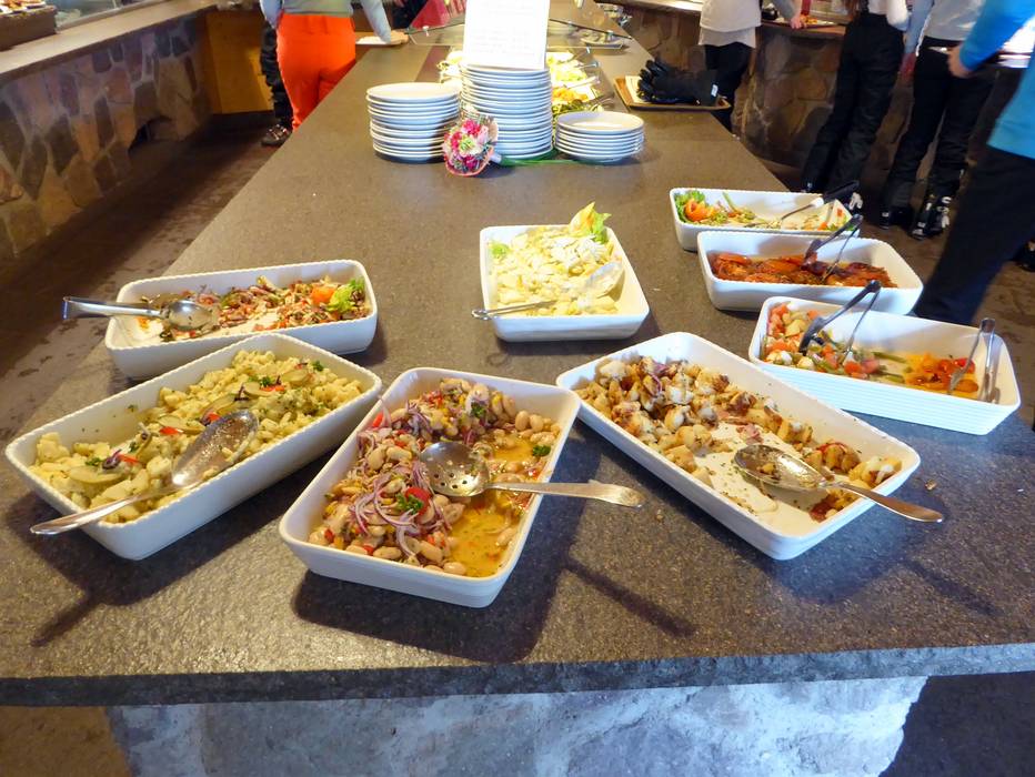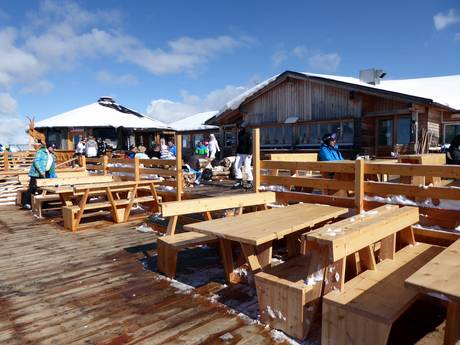 Quasi in tutto il comprensorio sciistico Alpe Cermis ci sono possibilità di ristoro. Solo sulle piste al Prafiorì non ci sono punti di ristoro. Le baite e i ristoranti offrono per lo più specialità regionali e pizze fatte in casa. Molto invitanti sono le numerose grandi terrazze soleggiate.
