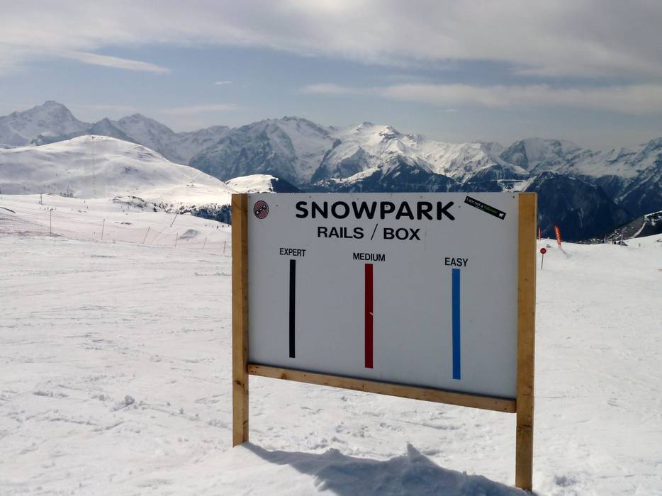 Lo Snowpark Alpe d'Huez lascia ben pochi desideri insoddisfatti: rail, box, tre Big Air Line di diversi livelli di difficoltà, un Bag Jump. Bisogna davvero impegnarsi per annoiarsi qui.