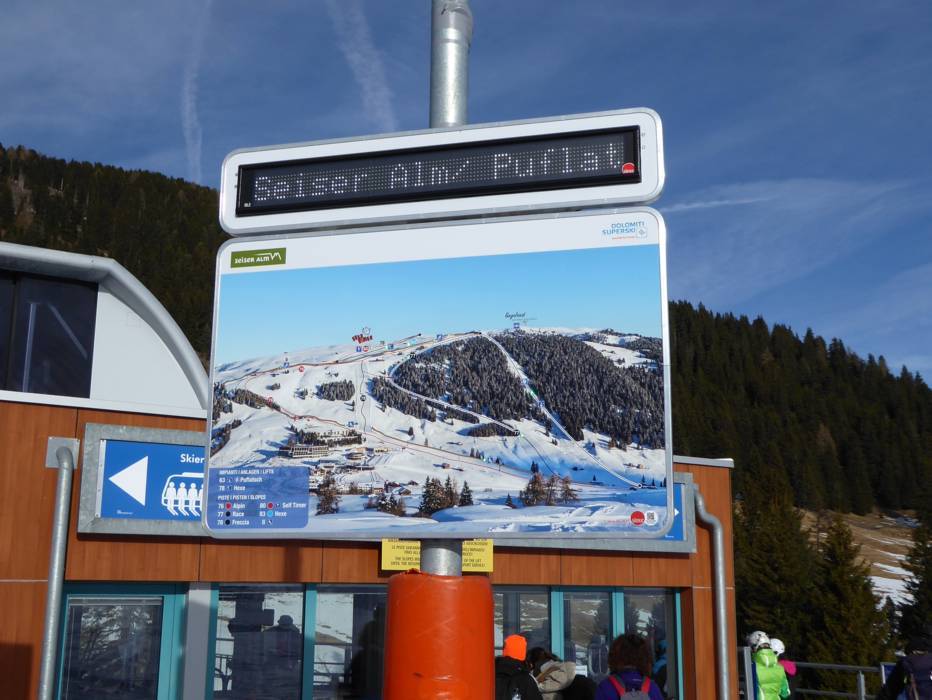 | Nota: Gli orari d'esercizio sono indicazioni generali fornite dal comprensorio sciistico Alpe di Siusi (Seiser Alm) e possono variare in funzione di circostanze particolari, giorni settimanali, vacanze scolastiche e festività. | |