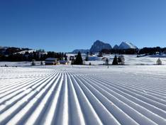 Piste da fondo ad alta quota con neve garantita attraversano l'Alpe di Siusi, offrendo una splendida vista sulle Dolomiti. Che siano facili, di media difficoltà, difficili, per skating o classico, sull'altopiano troverai tutto ciò che desideri. I biglietti per lo sci di fondo devono essere acquistati.