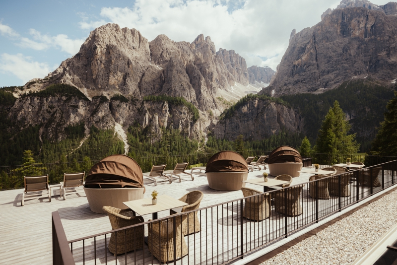 Dal balcone delle camere e suite del nostro hotel 4 stelle a Corvara potrete ammirare in tutta tranquillità questa bellezza paesaggistica e godervi ore di puro relax.