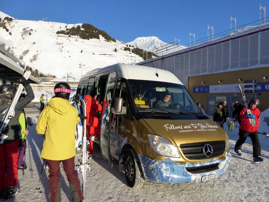 Le stazioni di Andermatt e Dieni (Sedrun) della Matterhorn-Gotthard Bahn (MGB) si trovano direttamente presso gli impianti di risalita. - Ampia rete di skibus