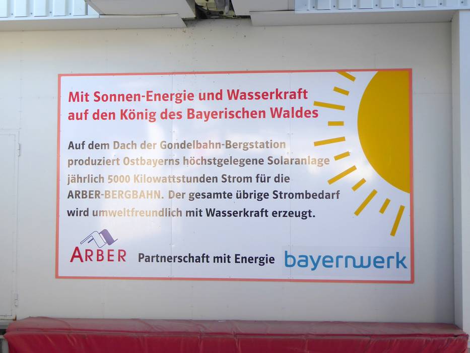 Sul tetto della stazione a monte dell'Arber si trova l'impianto solare più alto della Bassa Baviera, che produce ogni anno 5000 kilowattora di elettricità per la funivia dell'Arber. Il fabbisogno energetico restante viene coperto in modo ecologico tramite energia idroelettrica. Inoltre, nel parcheggio sono disponibili colonnine di ricarica per auto elettriche.