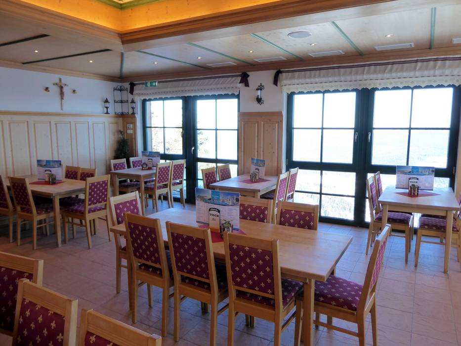 Buon cibo, una sala da pranzo con stufa a legna e una splendida vista sulla valle di Eisenstein attendono gli ospiti. Nell’edificio si trova anche l’ufficio di stato civile più alto della Foresta Bavarese. Quindi, chi vuole sposarsi...