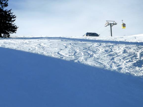 La discesa più ripida dell’area sciistica, la pista Slalomhang, si snoda lungo la cabinovia e confluisce nella pista Donauwellenabfahrt.