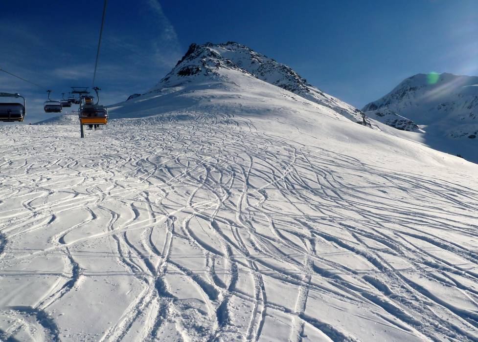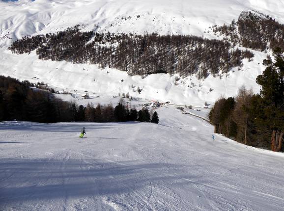 Gli esperti si sentono molto a loro agio sulle piste difficili nella Val Roja. Si può anche fare ogni tanto una deviazione nella neve fresca.
