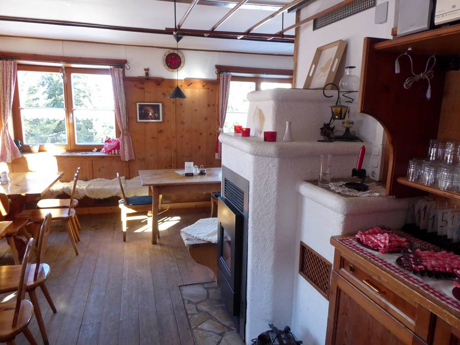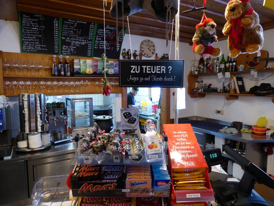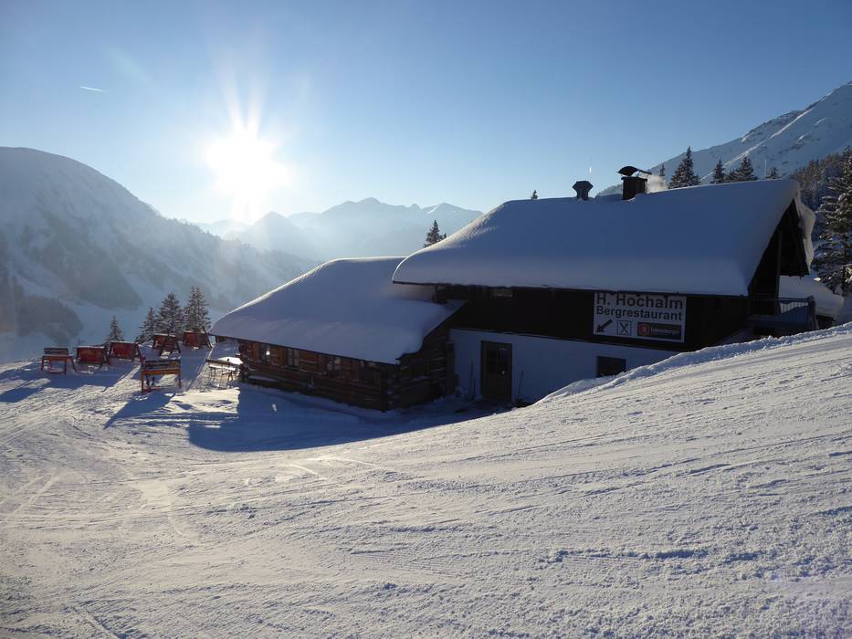 La Heiterwanger Hochalm ha quel fascino da baita canadese che anche il gestore ha fatto suo: rustico, scaltro e diretto. La Hochalm è un ristorante self-service con una splendida terrazza soleggiata esposta a sud e una vista panoramica mozzafiato. Molti ordinano la pizza. Chi se ne intende: Kaiserschmarrn. E chi ha coraggio: Jagatee.