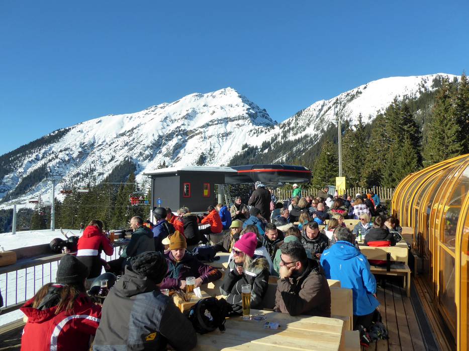 Al "The View" si può fare una sosta durante tutta la giornata. Per la colazione tardiva ci sono Weißwürste e durante il giorno c'è una vasta scelta di zuppe, schnitzel, flammkuchen, pasta e raclette. Anche la selezione di vini è notevole. Una grande terrazza soleggiata e un après-ski bar completano l'offerta.