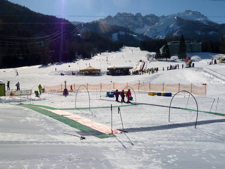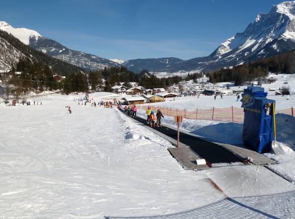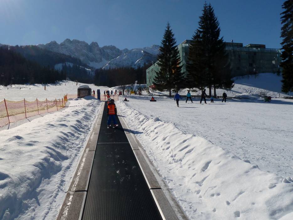 Direttamente alla stazione a valle, i bambini possono divertirsi nel Kinderland e imparare a sciare. Un tappeto magico extra largo fa la gioia dei più piccoli.