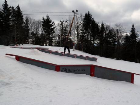 Bolton Valley offre 3 snowpark illuminati per principianti e sciatori esperti.