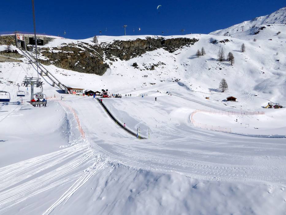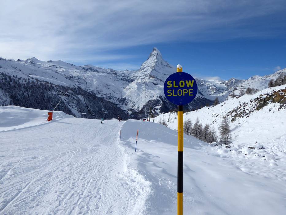 A Zermatt, i principianti possono esplorare molti punti del comprensorio sciistico su piste facili. Tuttavia, non è possibile percorrere l’intero comprensorio solo su piste facili. In alcune stazioni ci sono parchi per principianti e Slow Slopes. Il Wolli Anfängerpark Sunnegga è ideale per le prime curve. Qui ci sono diversi tappeti mobili e, una volta sicuri sugli sci, si può scendere sulla Slow Slope verso Eja o sulla Slow Slope Standard. Al Gornergrat ci sono alcune piste facili e larghe, una Slow Slope e il grande parco principianti al Riffelberg. Nel parco principianti ci sono diversi tappeti mobili e skilift a fune. Un altro parco principianti con skilift si trova al Trockener Steg. Qui i principianti possono anche esplorare una pista glaciale molto facile e larga. Non esiste una facile discesa a valle verso Zermatt, quindi i principianti devono sempre scendere a valle con gli impianti di risalita.
