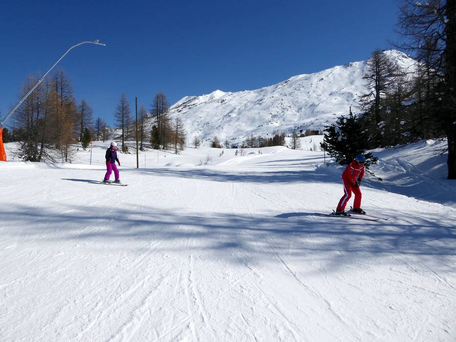 Valtournenche offre anch’essa molto per i principianti. A Salette, presso la stazione a monte della cabinovia, ci sono diversi tappeti mobili e piste facili presso la seggiovia Motta. Tuttavia, la discesa a valle è di media difficoltà.