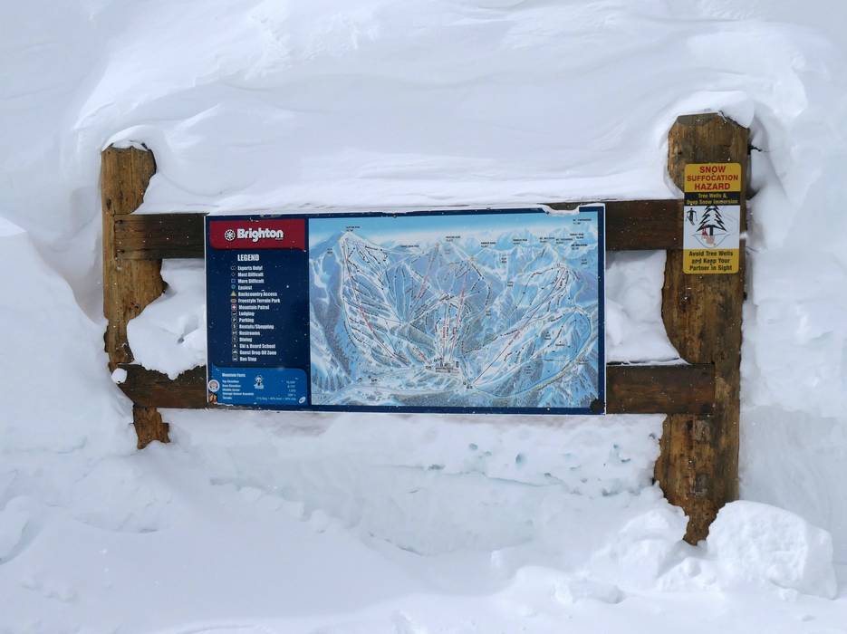 La mappa delle piste rappresenta molto bene l’area sciistica di Brighton. Le piste e gli impianti di risalita sono chiaramente indicati. I punti importanti dell’area sciistica sono segnalati. Sono disponibili ulteriori informazioni sulla gastronomia, sulla scuola di sci e sui negozi.