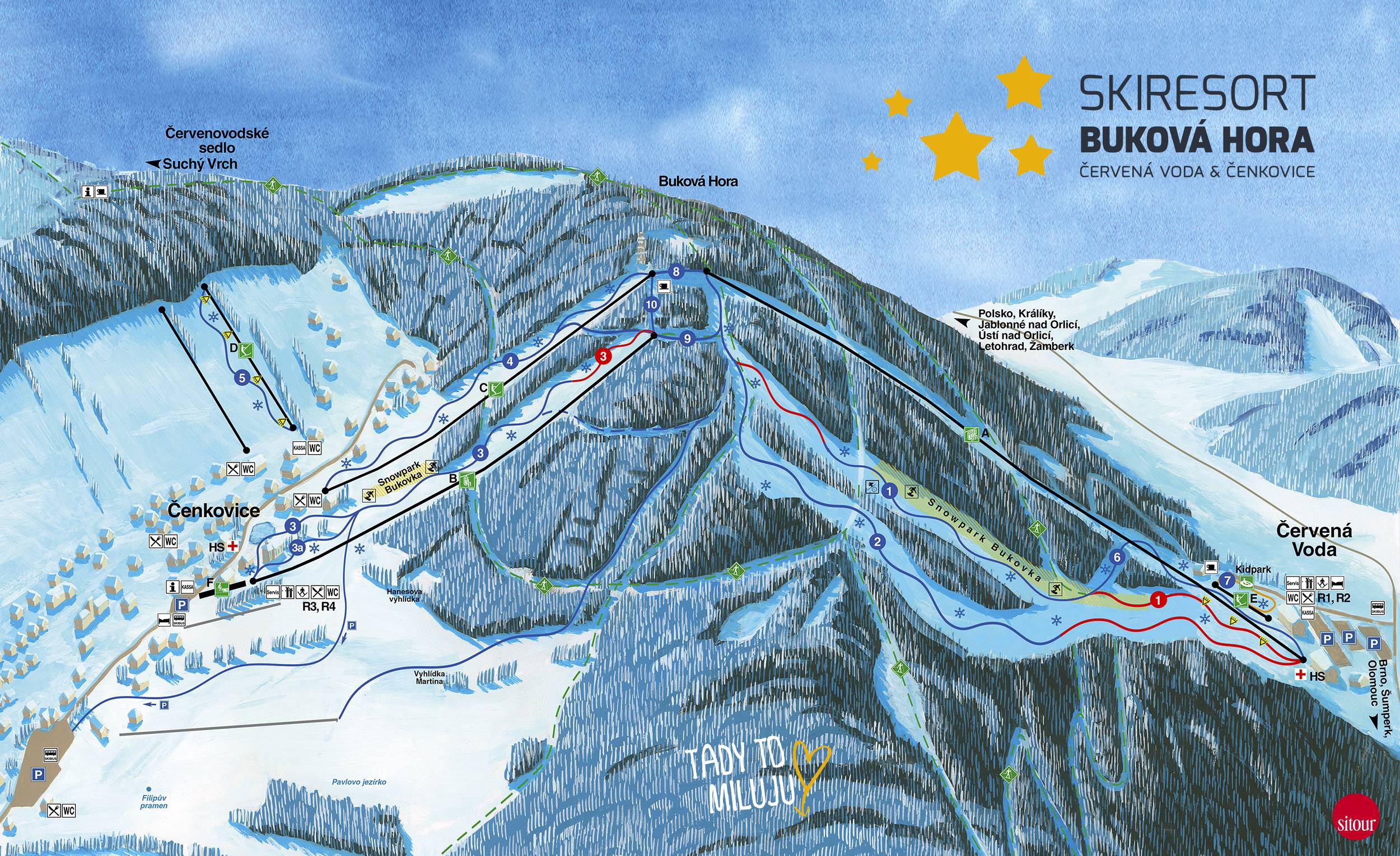 Mappa delle piste Buková hora – Čenkovice/Červená Voda Stagione 2024/2025