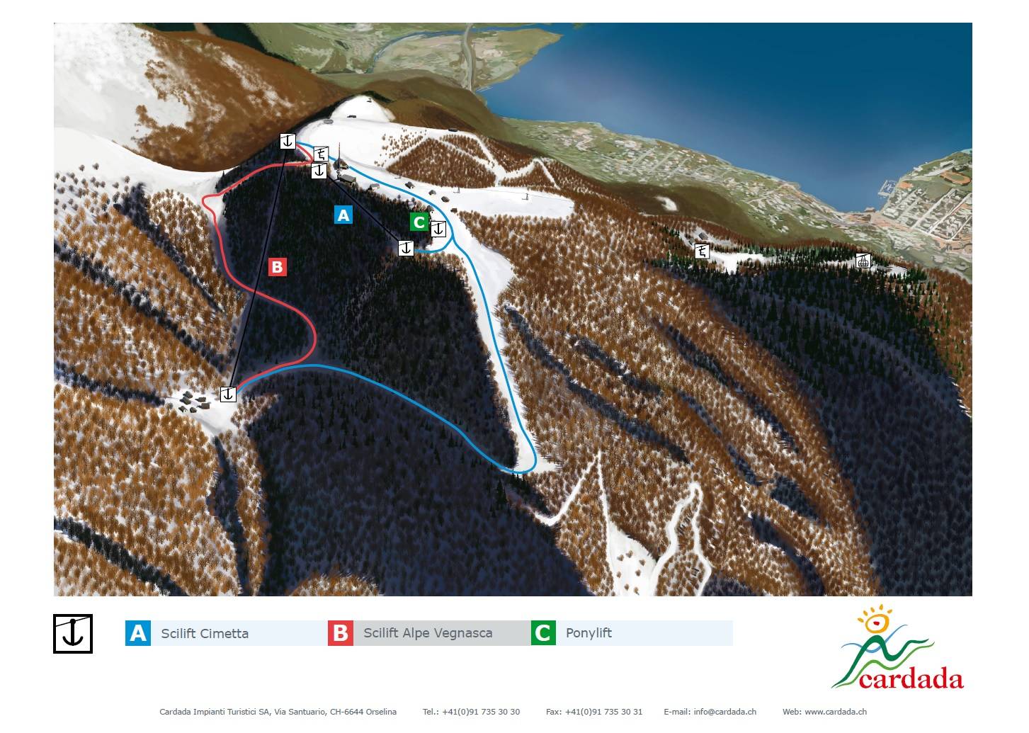 Mappa delle piste Cardada/Cimetta Stagione ---- !!! closed/stillgelegt
