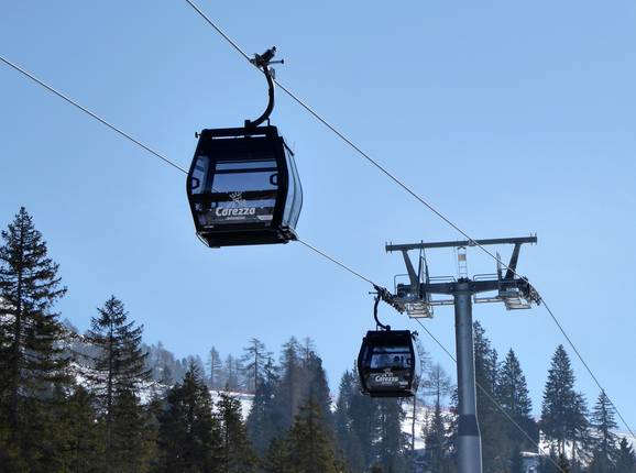 Le altre piste dell’area sciistica Carezza tra König Laurin e Passo di Costalunga sono servite da moderne seggiovie e cabinovie. Per i principianti sono disponibili diversi tappeti mobili e skilift a piattello. Ulteriori tappeti mobili delle scuole di sci locali completano l’offerta. Da San Cipriano, nel comune di Tires, la funivia cabrio di Tires porta fino alla Malga Frommer. Tuttavia, non esiste una pista che scenda fino a San Cipriano.