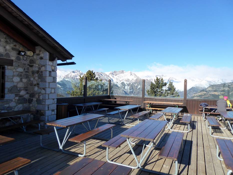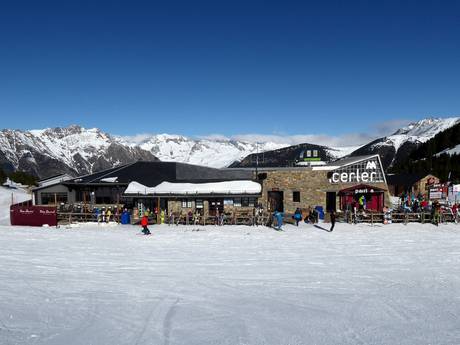 Nei punti chiave Cota 2000 e Ampriu 1900 si trovano ottimi ristoranti e terrazze soleggiate. Altre possibilità di ristoro nell’area sciistica di Cerler completano l’offerta. Purtroppo sulle cime non ci sono rifugi o terrazze soleggiate.