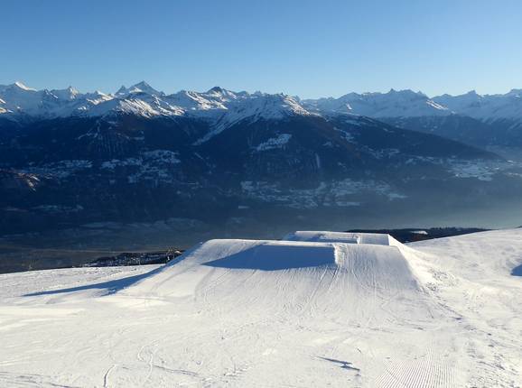 Il comprensorio sciistico di Crans-Montana offre un ottimo snowpark e una funslope.