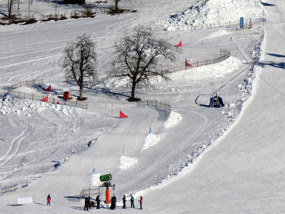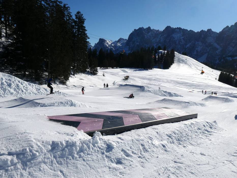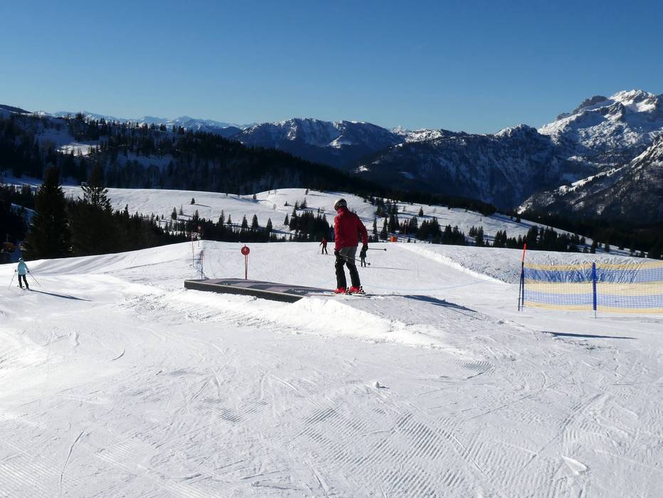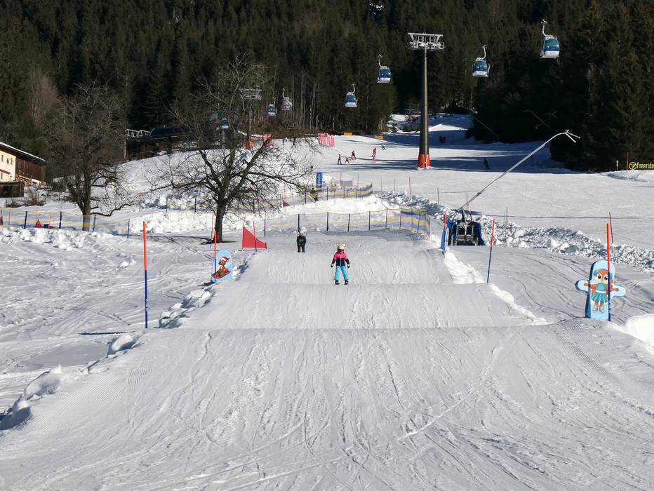 Lo snowpark è un divertimento per tutta la famiglia. In una posizione soleggiata, gli ostacoli e i salti sono pensati per le famiglie.