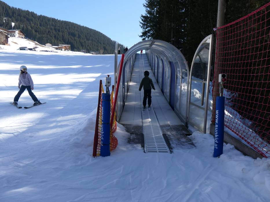 Direttamente alla stazione a valle di Mellau si trova il Kinderwelt Hasenlift con tappeti magici e skilift a fune. Un terreno ideale per le prime curve sulla neve.