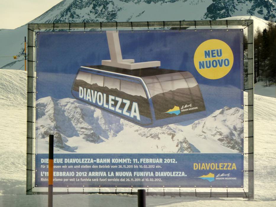 A causa del montaggio delle nuove cabine e per la relativa revisione, la funivia del Diavolezza resterà chiusa dal 26 novembre 2011 al 10 febbraio 2012. La rimessa in esercizio è prevista per l'11 febbraio 2012.2000/2001