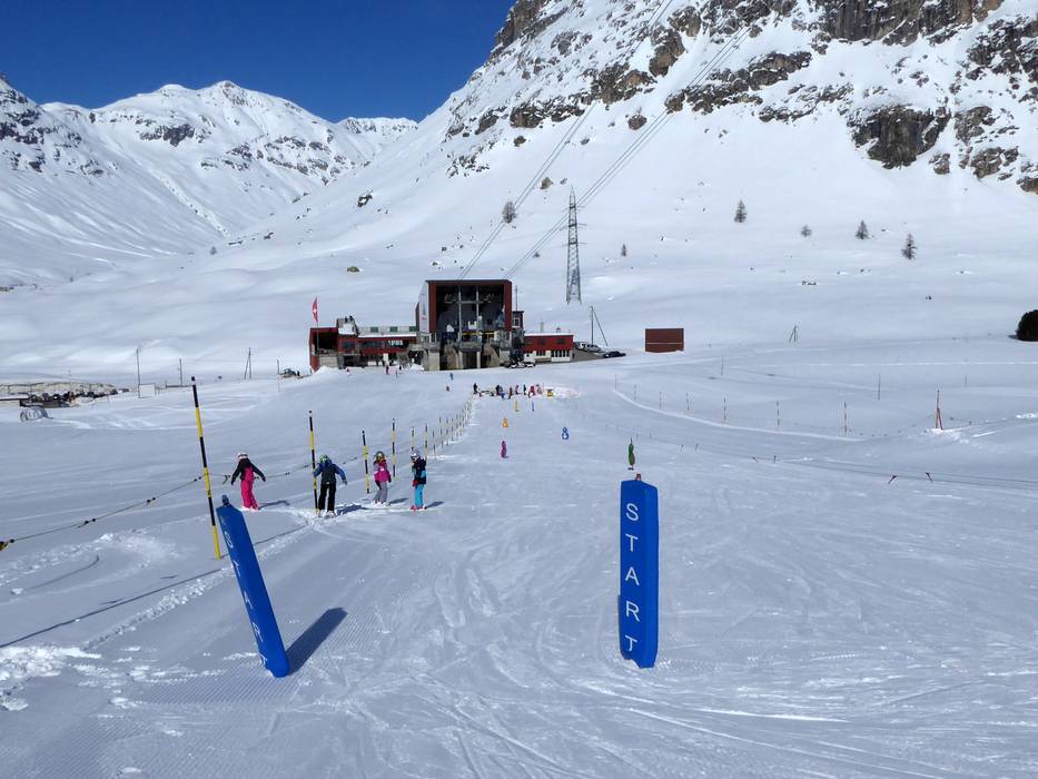 Lo skilift per principianti si trova direttamente presso la stazione a valle della funivia Diavolezza. I bambini possono esercitarsi allo skilift a fune.