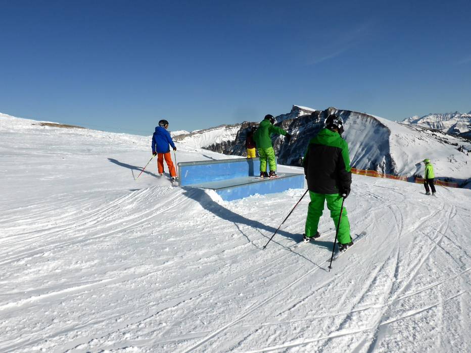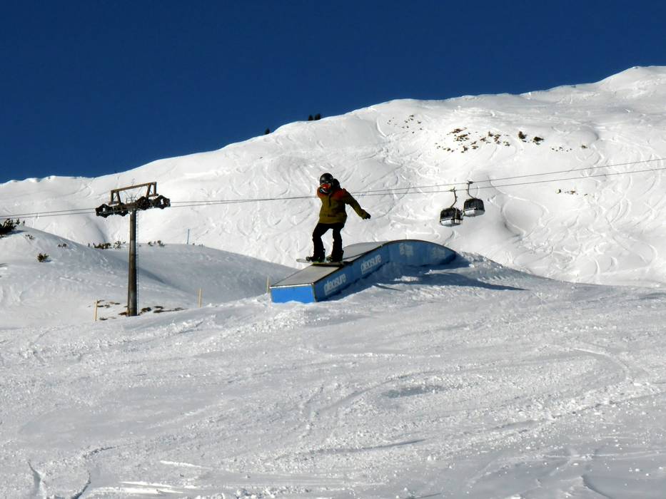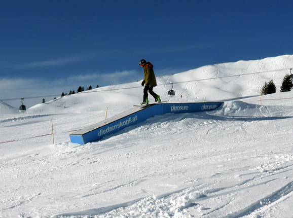 Il funpark al Diedamskopf offre ostacoli per tutti, dai principianti del freestyle fino ai futuri ProRider. Oltre al parco principale, nella parte superiore dell’area sciistica c’è anche una linea con ostacoli come Jibkugel e Butterbox.