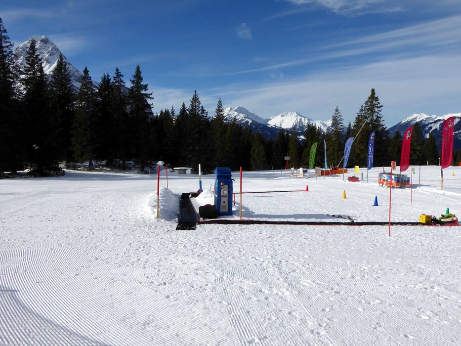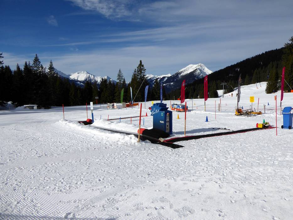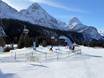 Area riservata con skilift sulla Ehrwalder Alm. Qui i genitori possono salire in montagna con la cabinovia anche senza sciare e osservare i loro piccoli mentre fanno le prime curve.