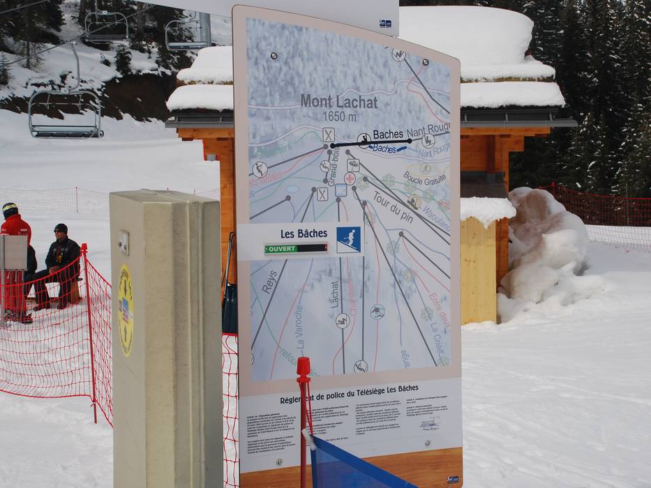 Orientamento (Mappa delle piste, Pannelli informativi, Segnaletica) e sicurezza nel comprensorio sciistico Espace Diamant - Les Saisies/Notre-Dame-de-Bellecombe/Praz sur Arly/Flumet/Crest-Voland