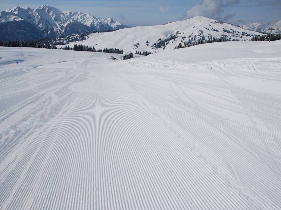 Solo raramente ci sono tratti che non sono preparati in modo ottimale. Un altro aspetto positivo per le piste: per le sue dimensioni, Espace Diamant ha una capacità di trasporto relativamente bassa, quindi le piste non sono rovinate nemmeno nel pomeriggio. Alcune piste non vengono battute quotidianamente, ma ciò riguarda di solito solo le discese nere.