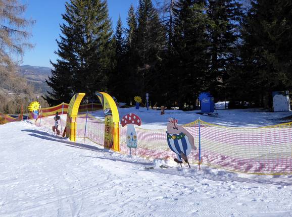 Sul tappeto magico della scuola di sci Funny, i bambini imparano le prime curve sulla neve. Numerosi personaggi delle fiabe garantiscono divertimento. Presso gli skilift per principianti, i bambini possono migliorare in modo ideale. La scuola di sci offre anche assistenza durante il pranzo.