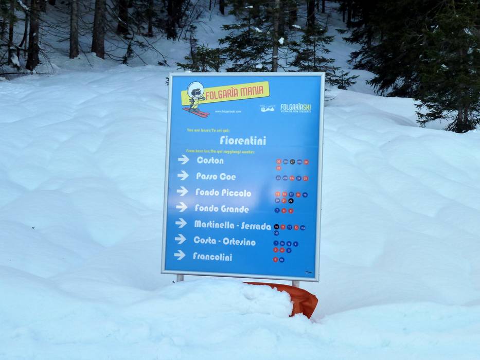 Ci si orienta molto bene nel comprensorio sciistico di Folgaria-Fiorentini. Tutte le piste sono segnalate e agli incroci principali, oltre ai cartelli, sono presenti anche mappe delle piste.