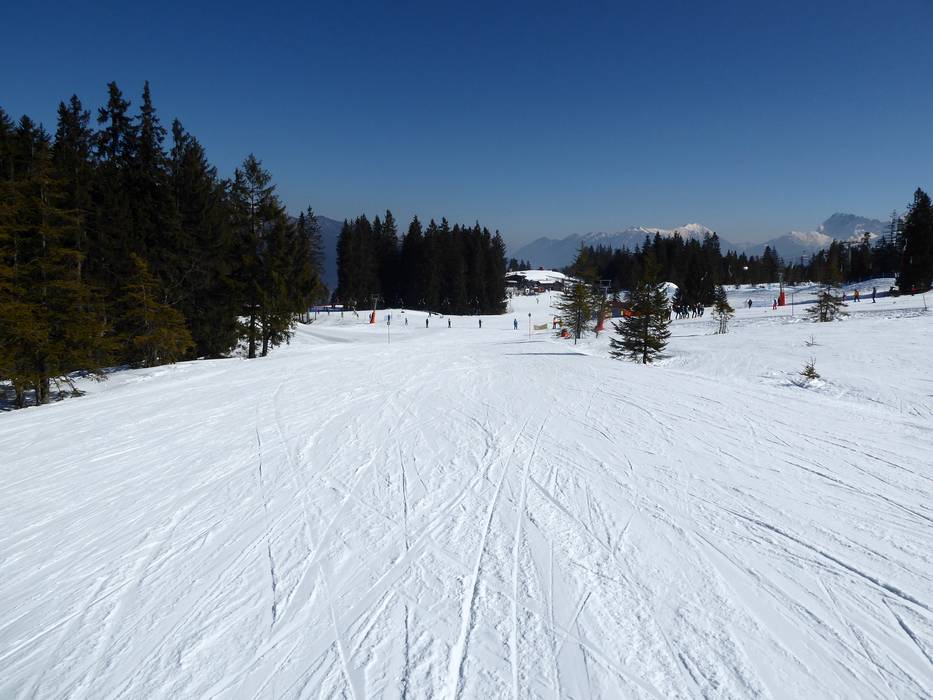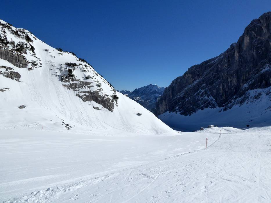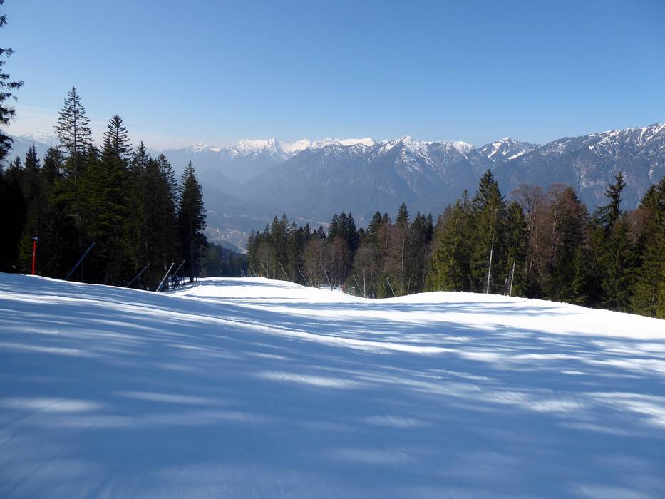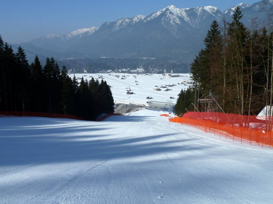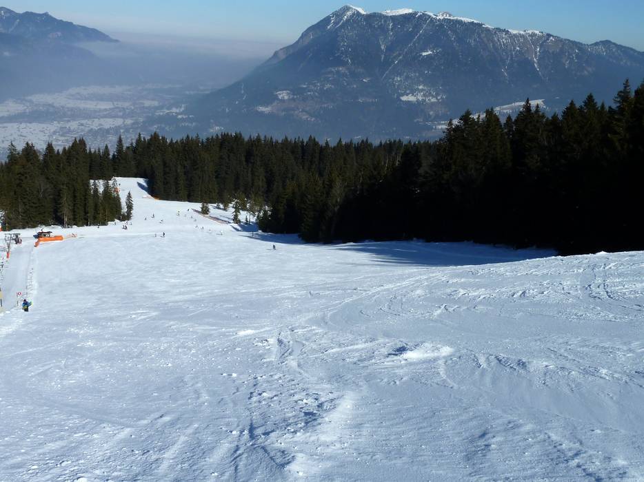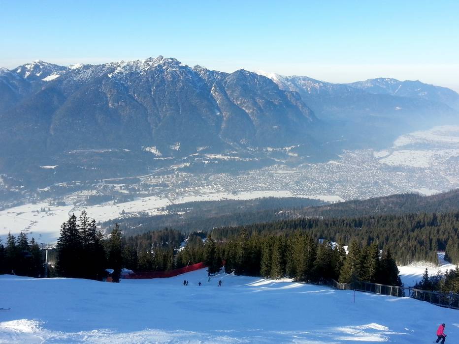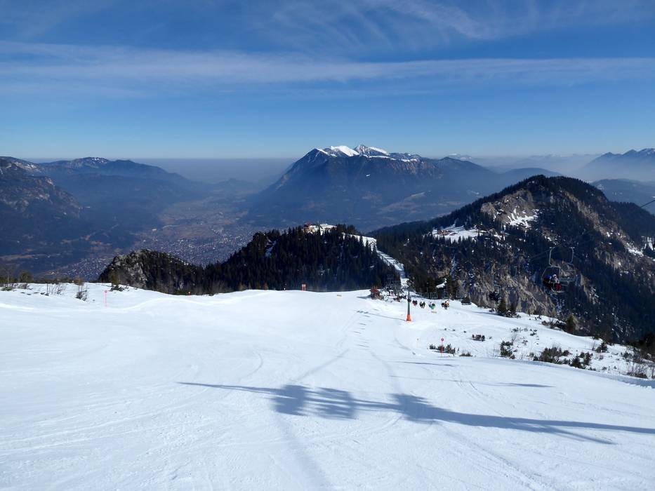 Ci sono discese a valle innevate verso Hausberg e Kreuzeck/Alpspitzbahn.