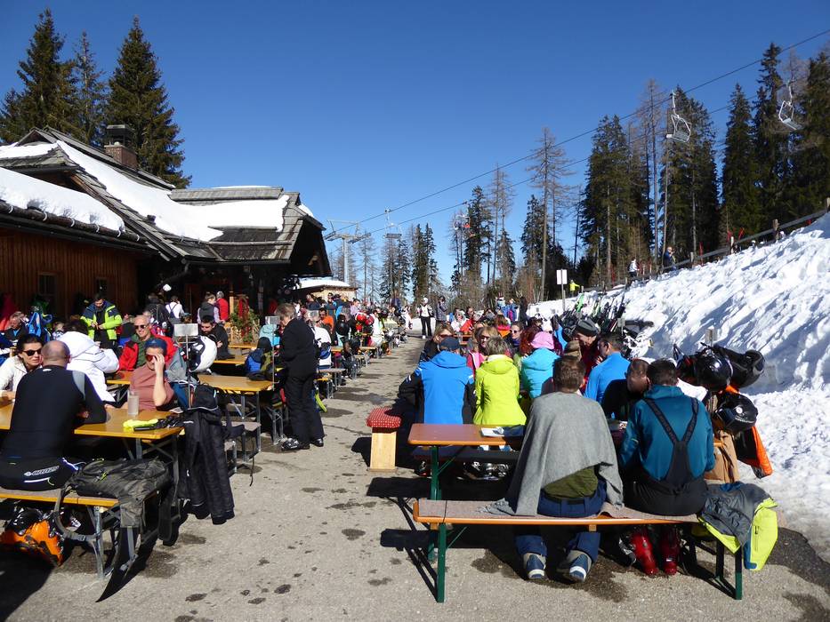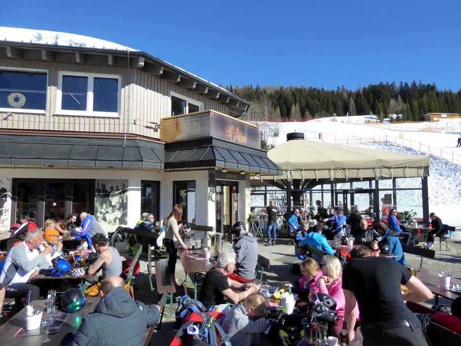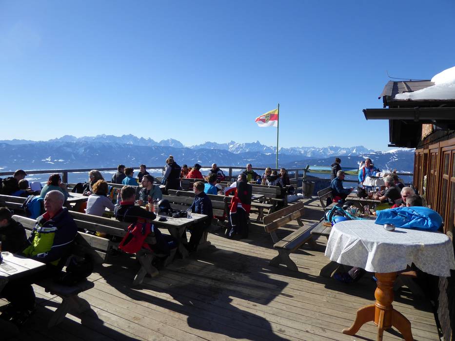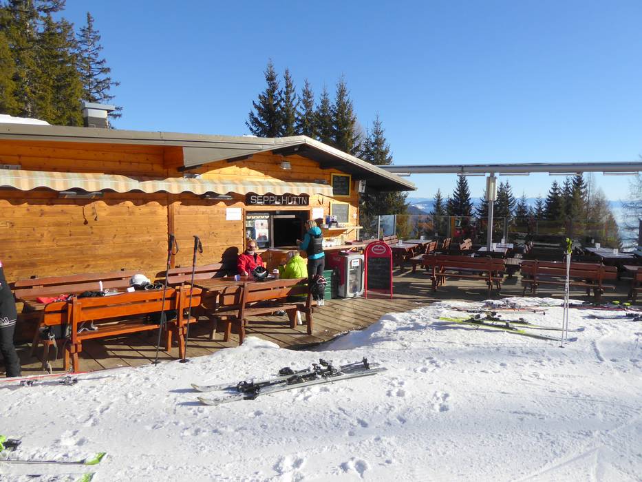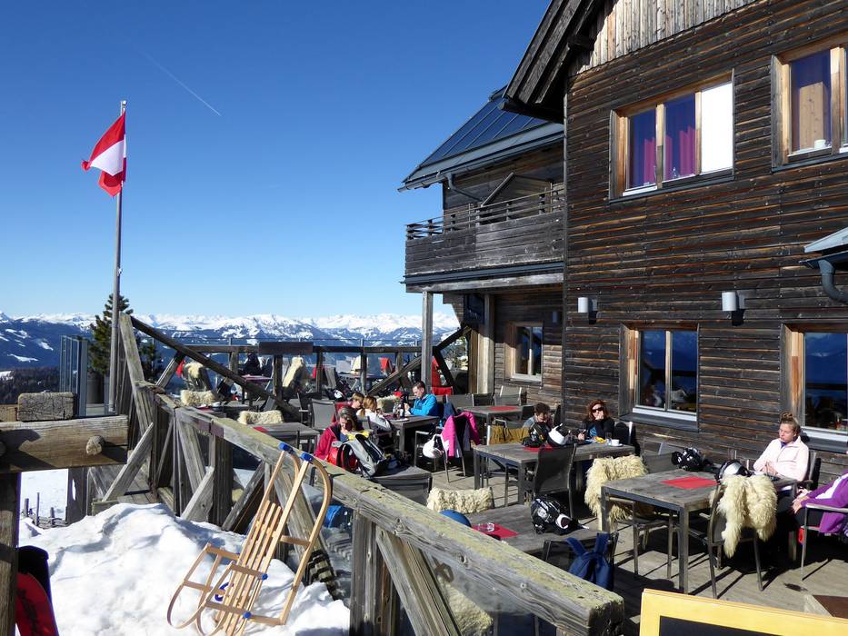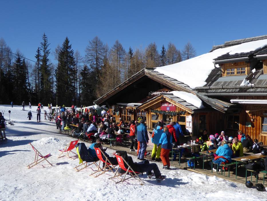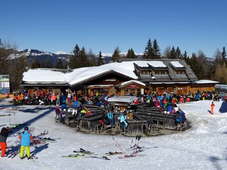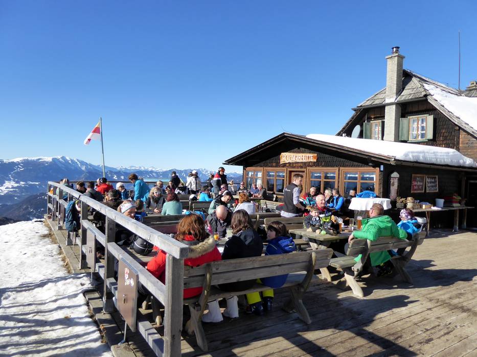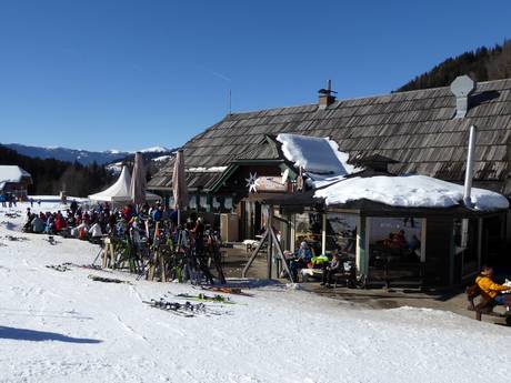 Alla stazione a monte dell’area sciistica, il panorama a 360 gradi è unico. Viene offerta cucina carinziana con servizio self-service.