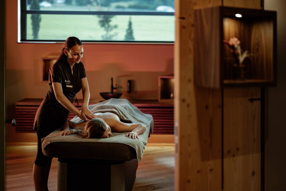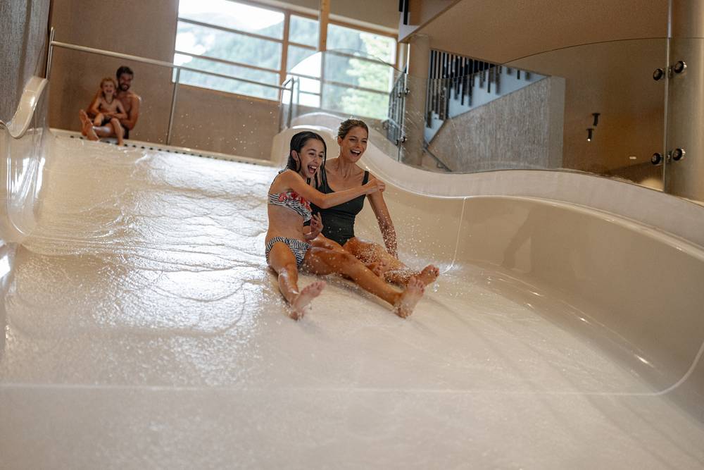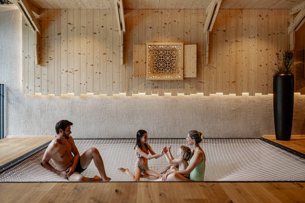 Per quanto riguarda il benessere, l’Hotel Masl è all’avanguardia. Nell’estate 2025 l’hotel è stato ampliato con nuove suite dotate di vasca idromassaggio e sauna private. La nuova area Wellness & Spa Adults-Only offre una spaziosa piscina interna ed esterna dal design naturale con hot-whirlpool integrato, una piscina esterna con lettini idromassaggio e braciere. L’area saune non lascia nulla a desiderare. Naturalmente non manca una sauna alpina in baita all’aperto. Il mondo acquatico per famiglie offre una zona piscina interna ed esterna, una vasca idromassaggio e uno scivolo a onde largo 15 m. Le sale relax con vista sulle montagne circostanti completano l’offerta.