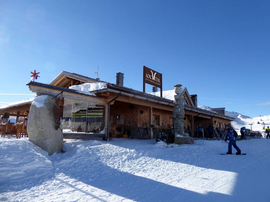 Il rifugio presso la stazione a monte Jochtal è una struttura più grande. Vengono servite specialità tipiche tirolesi. Un punto forte è la pizza fresca cotta nel forno a legna. Quando il tempo è bello, la terrazza soleggiata invita a fermarsi.
