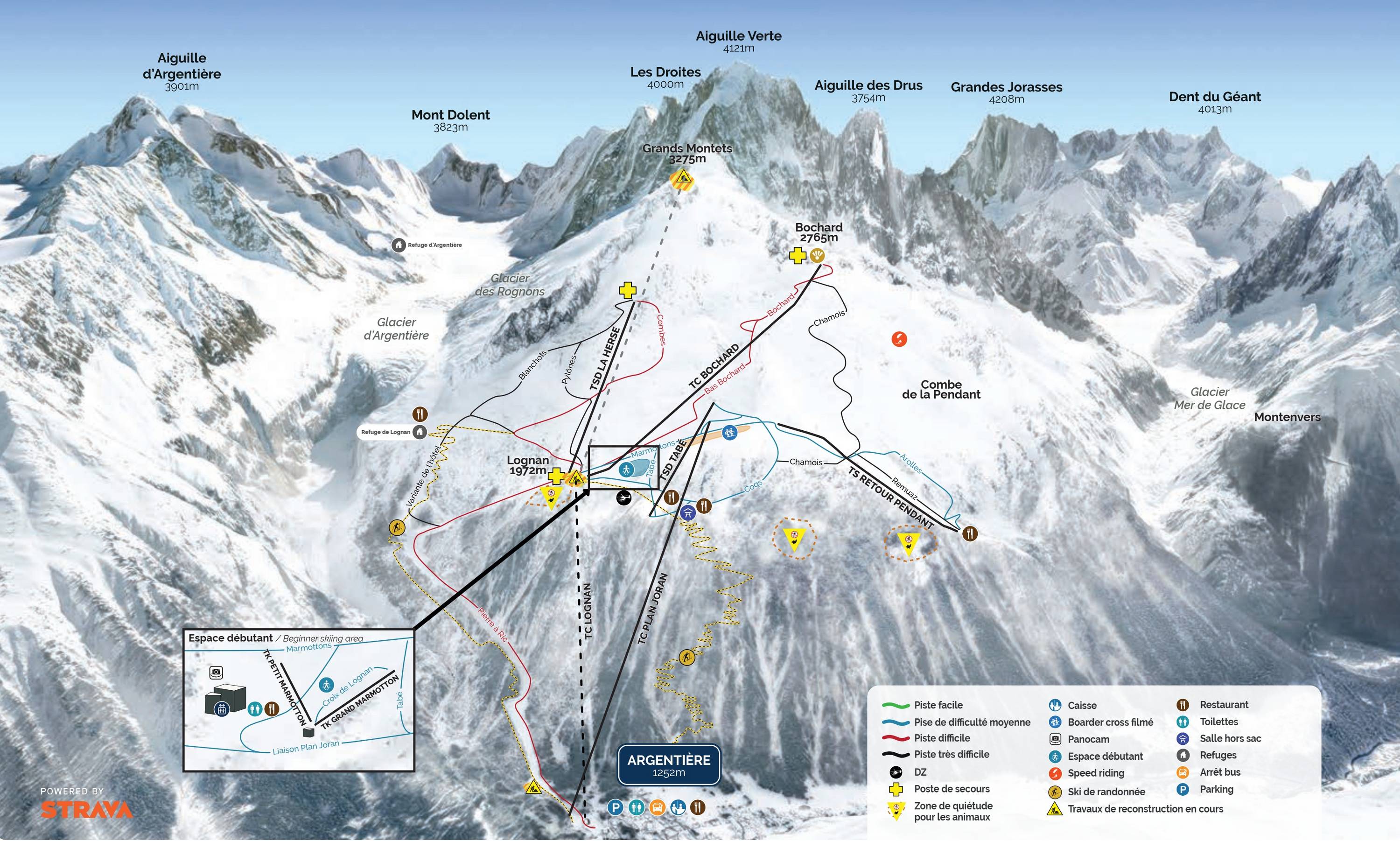 Orientamento (Mappa delle piste, Pannelli informativi, Segnaletica) e sicurezza nel comprensorio sciistico Grands Montets - Argentière (Chamonix)