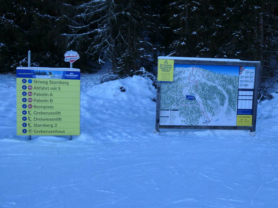 | Nota: Gli orari d'esercizio sono indicazioni generali fornite dal comprensorio sciistico GrebenzenHöhen - St. Lambrecht e possono variare in funzione di circostanze particolari, giorni settimanali, vacanze scolastiche e festività. | |
