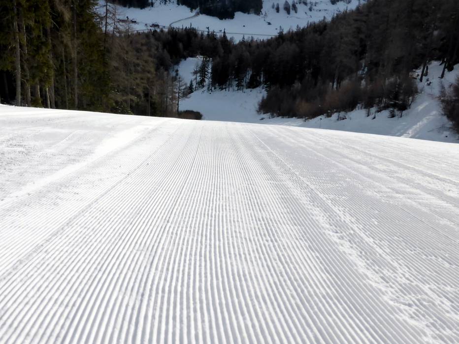 Si preparano anche le piste estremamente ripide con la massima cura e queste rimangono in condizioni eccellenti fino alla sera.
