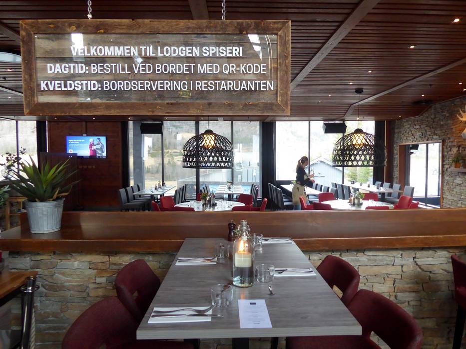 Il ristorante Rambler serve una combinazione di classici norvegesi e piatti internazionali. Particolarmente apprezzati sono gli hamburger, i piatti di carne e le opzioni vegane. Nei giorni freddi, un camino aperto riscalda l’ambiente. Quando il tempo è bello, la terrazza soleggiata invita a fermarsi.