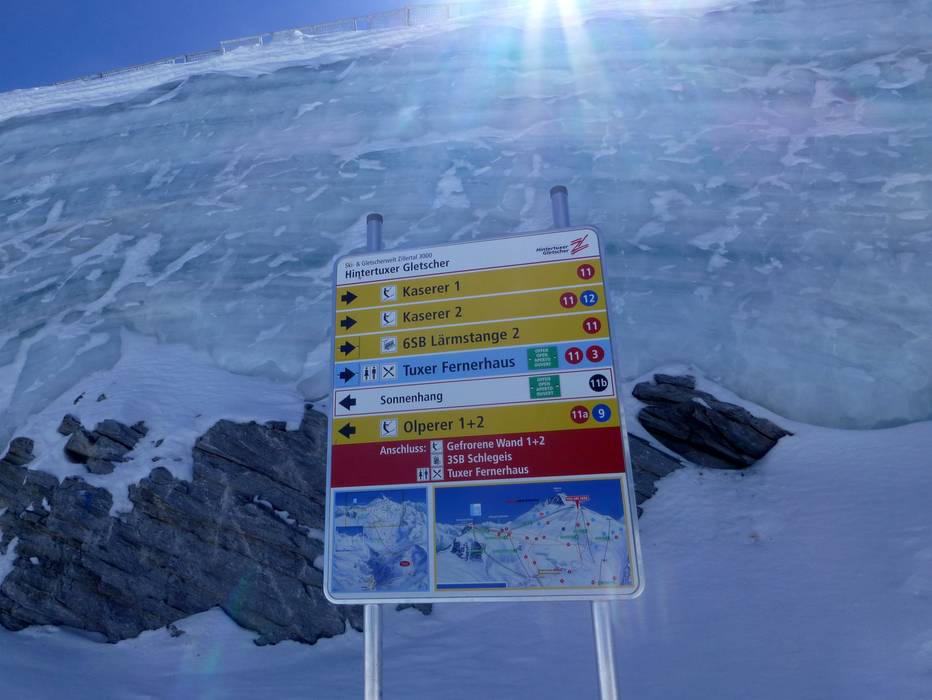 Orientamento (Mappa delle piste, Pannelli informativi, Segnaletica) e sicurezza nel comprensorio sciistico Hintertuxer Gletscher (Ghiacciaio dell'Hintertux)