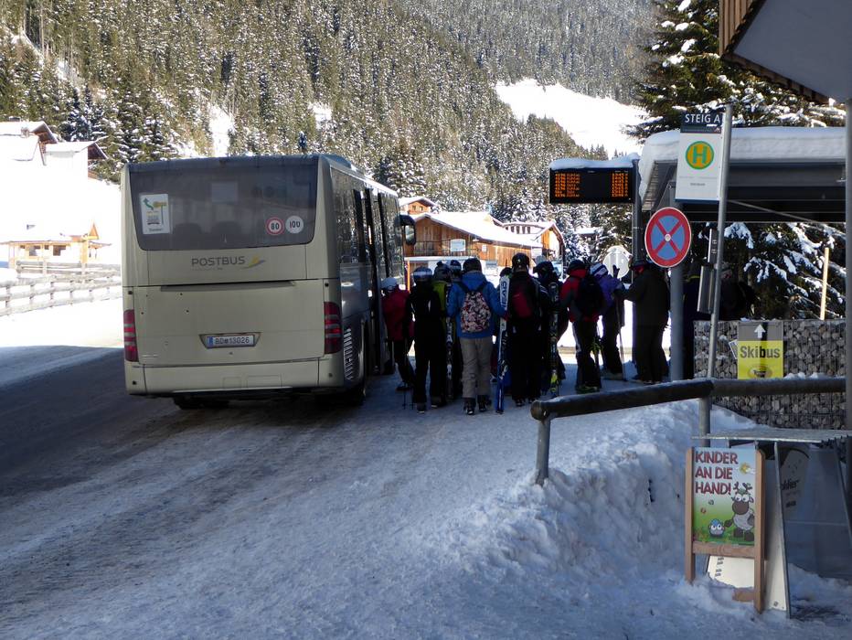 - Gli skibus partono da Oetz, Habichen, Piburg e Sautens direttamente verso la stazione a valle di Oetz. La nuova fermata dello skibus si trova direttamente presso la funivia. Da Haiming e Haimingerberg parte uno skibus per Ochsengarten. Inoltre, ci sono skibus tra Ochsengarten e Kühtai, così come altri skibus e autobus di linea che possono essere utilizzati gratuitamente con uno skipass valido in tutta la valle Ötztal.