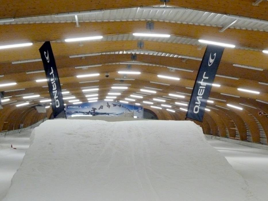 Sulla pista principale della Skihalle Ice Mountain è distribuito uno snowpark.
