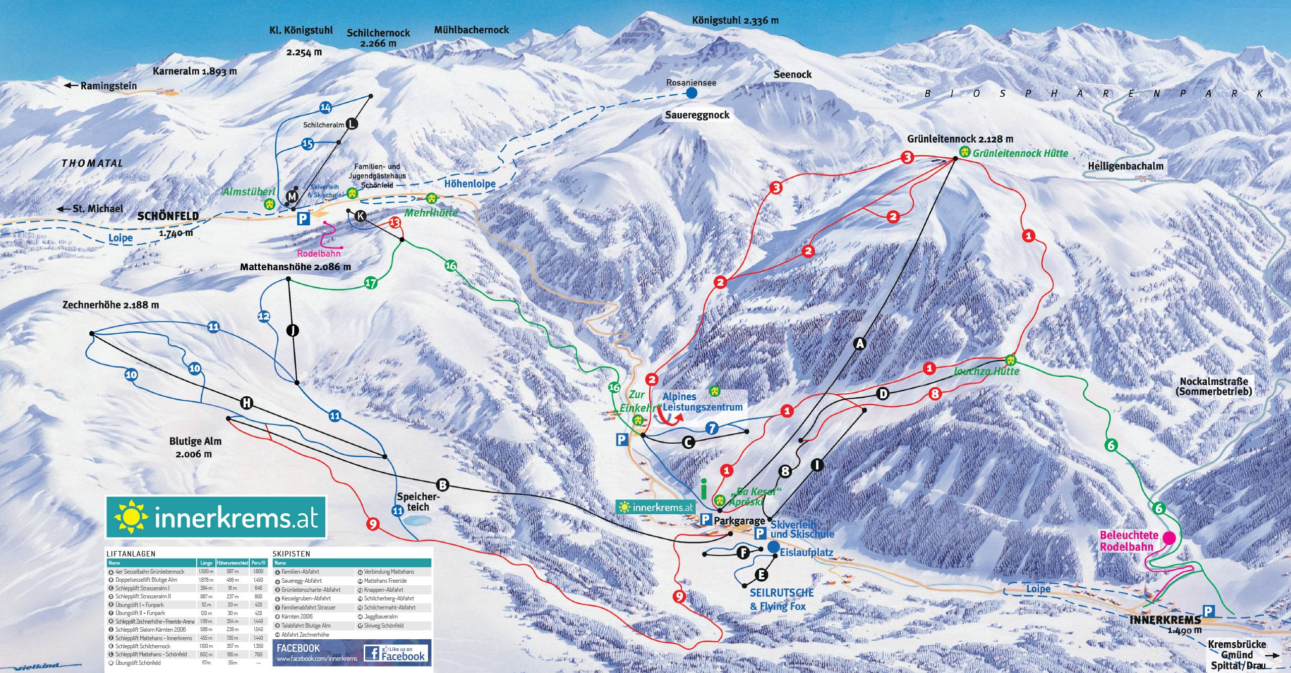 Mappa delle piste Innerkrems – Kremsbrücke (Krems in Kärnten) Stagione ---- !!! closed temporarily/vorübergehend außer Betrieb