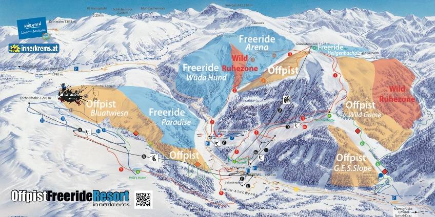 Mappa delle piste OffPist Freeride-Resort Innerkrems Stagione ---- !!! closed temporarily/vorübergehend außer Betrieb
