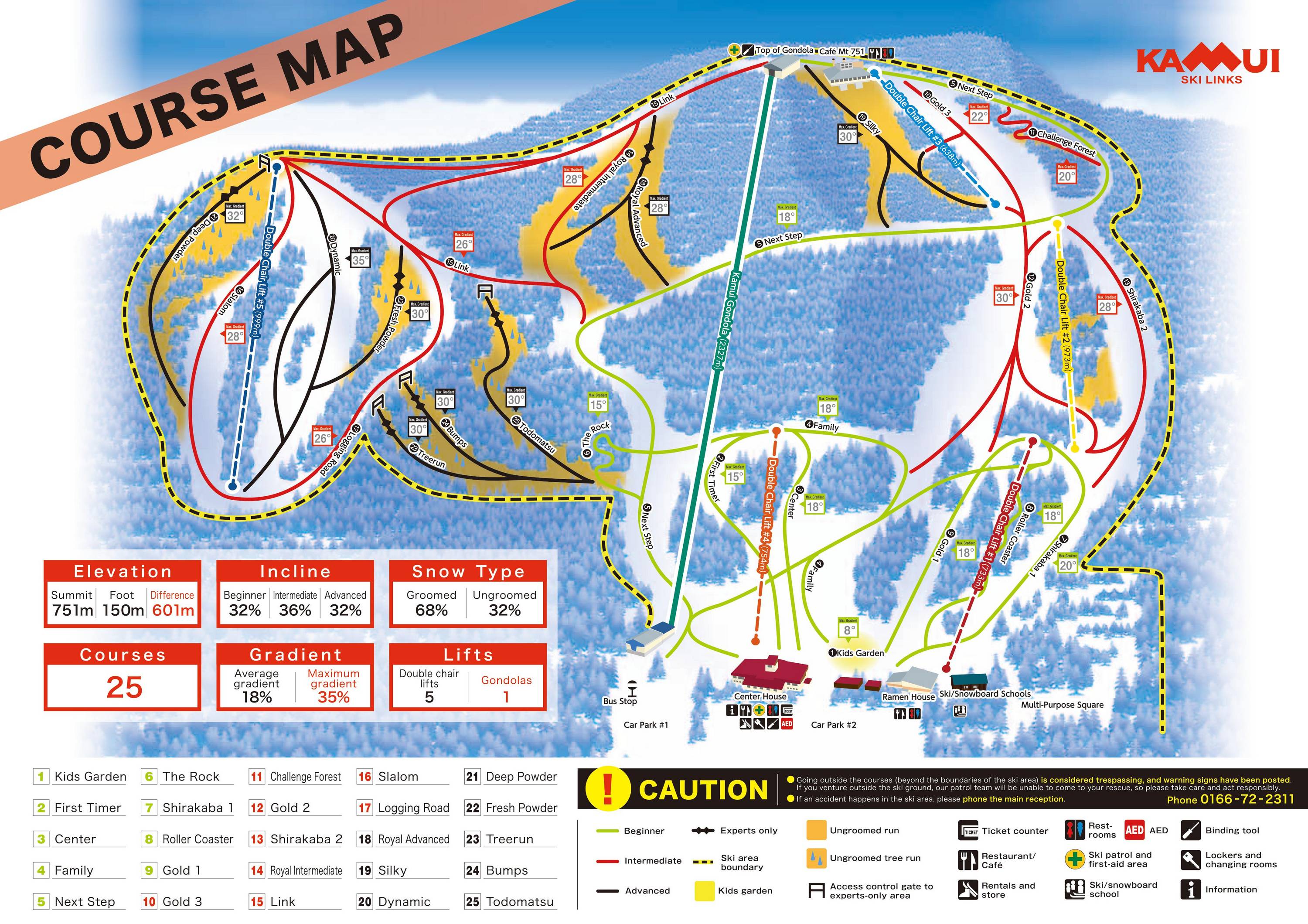 Mappa delle piste Kamui Ski Links Stagione 2025/2026