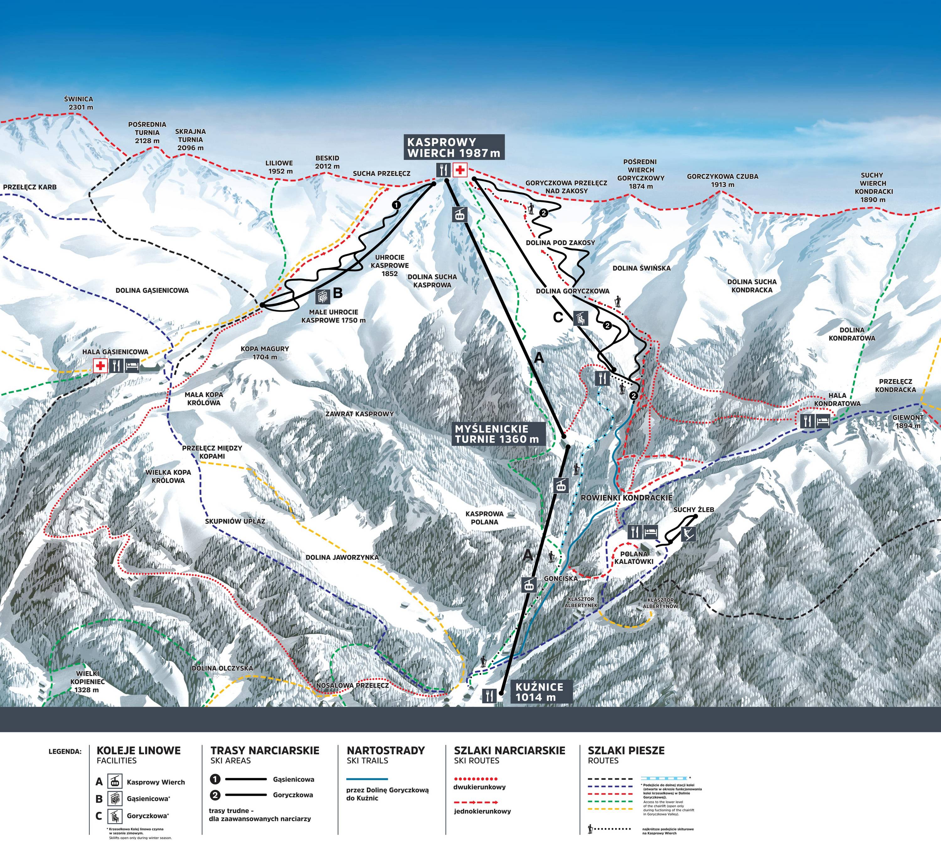 Orientamento (Mappa delle piste, Pannelli informativi, Segnaletica) e sicurezza nel comprensorio sciistico Kasprowy Wierch - Zakopane