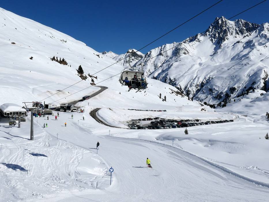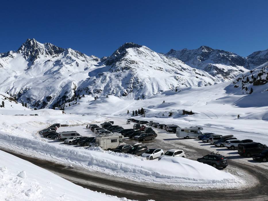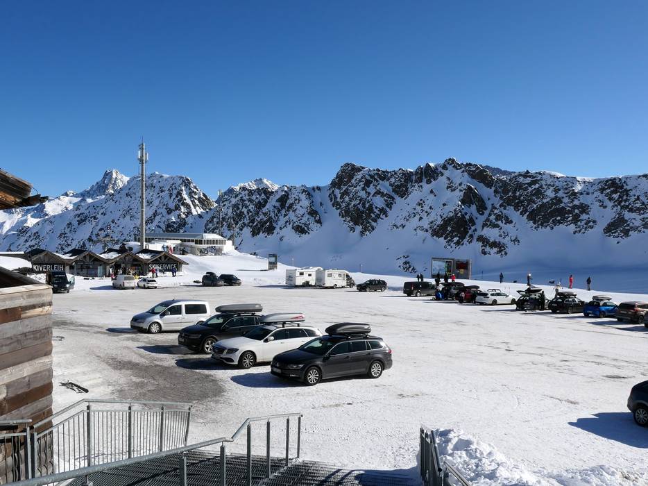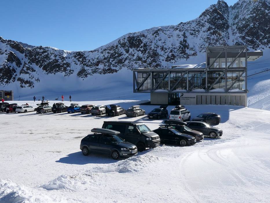 Dal casello a valle sono 26 km e 29 tornanti fino al parcheggio del ghiacciaio a 2.750 m. Quando la Ochsenalmbahn 1 è in funzione, è possibile parcheggiare già a 2.150 m e raggiungere il ghiacciaio comodamente con la seggiovia quadriposto. I parcheggi sono gratuiti. Il pedaggio della Kaunertaler Gletscherstraße è incluso nello skipass.